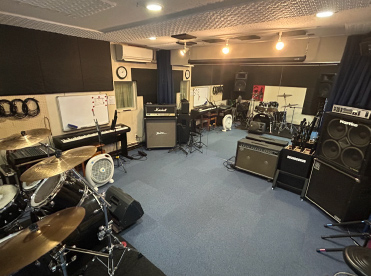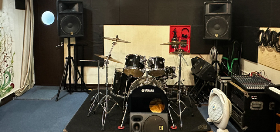 少人数での利用にぴったりのスペース設計です。バンドの練習や個人の音楽制作など、集中して取り組むのに適した広さを持っています。